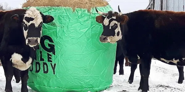 Developed to withstand the harsh northern Canadian weather. Does not freeze to the ground and stays flexible in the cold. Moisture hitting the outside of the Big Bale Buddy Round Bale Feeder will be repelled, keeping your hay drier. The Big Bale Buddy is hands down the best round bale feeder in the muddy conditions of spring and fall.