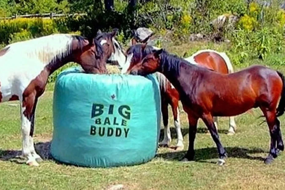 The Big Bale Buddy ensures that almost all your hay gets eaten, a simple affordable and safe alternative to hay waste.